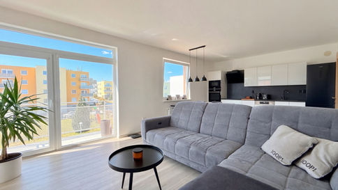 Prostorný byt s celkovou plochou 68,2m² - podlahová plocha bytu je 57,3 m² + 7,7 m² (balkón) + 3,2 m² (sklepní koje) .